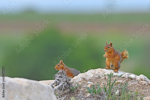 © TAMER YILMAZ, Fototapeta premium Squirrels sitting on a rock.