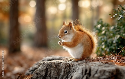 © regulator, Obraz premium Squirrels tranquil feast on weathered stump