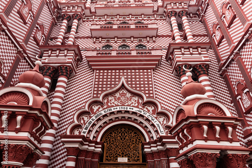Obraz premium Sri Lanka's Red Mosque, or Jami Ul-Alfar Masjid, is one of the architectural wonders of the world. Situated in the bustling Pettah district, one of the oldest parts of the city of Colombo,Sri lanka
