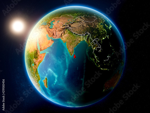 © harvepino, Fototapeta premium Sri Lanka with sunset from space
