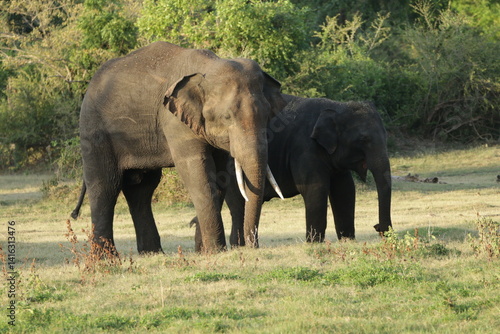 © Sumudu, Fototapeta premium Sri Lankan Elephants and Tuskers in Kalawewa, Sri Lanka