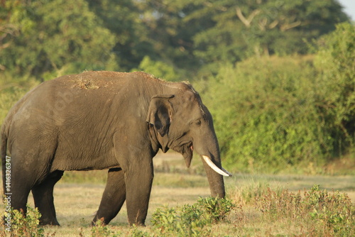 © Sumudu, Fototapeta premium Sri Lankan Elephants and Tuskers in Kalawewa, Sri Lanka