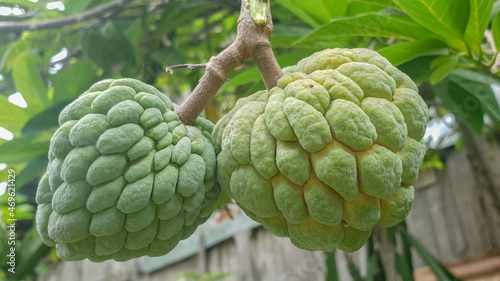 © sekitarief, Fototapeta premium srikaya fruits on the plant stem