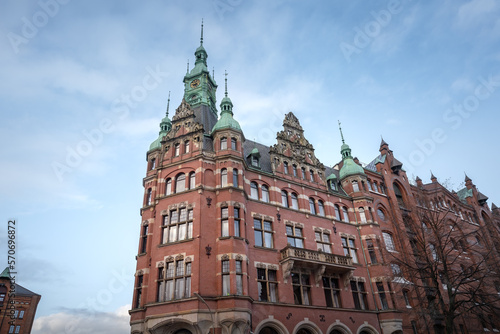 Fototapeta premium St. Annenplatz Square Buildings at Speicherstadt warehouse district -...