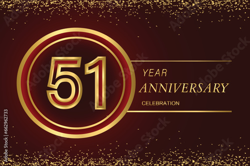 Fototapeta premium 51st anniversary logo with gold double line style decorated with glitter and confetti Vector EPS 10