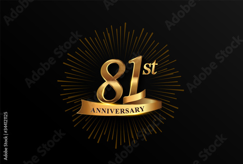 © Vectorideas, Fototapeta premium 81st anniversary logotype with fireworks and golden ribbon, isolated on elegant background. vector anniversary for celebration, invitation card, and greeting card