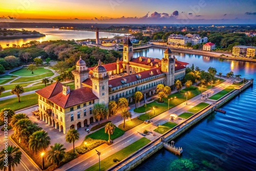 © Four888, Naklejka premium St. Augustine Lightner Museum Aerial: Spanish Renaissance Revival Architecture & Matanzas River