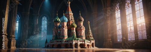 Fototapeta premium St. Basil's Cathedral Miniature Model in a Grand Hall.