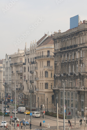 © Stephan Walochnik, Fototapeta premium Städtische Szene in Budapest auf der Szabad Sajtó Útca Straße