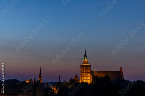 Naklejka premium St. James and the castle in Olsztyn, the Garrison Church - in the evening, a...