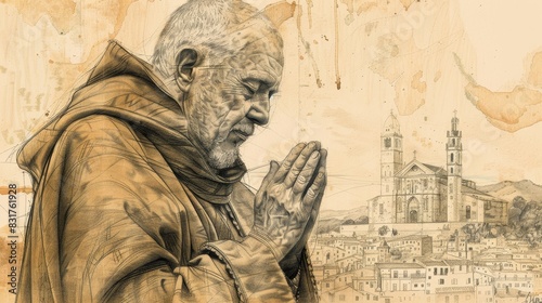 © T Studio, Fototapeta premium St. John of the Cross in Spanish Countryside, Mystical Poetry, Biblical Illustration, Beige Background, Copyspace