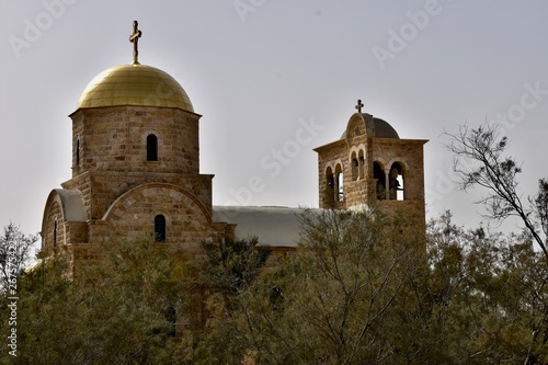 © Globepouncing, Fototapeta premium St John the Baptist Orthodox Church with Trees in Foreground, Jordan