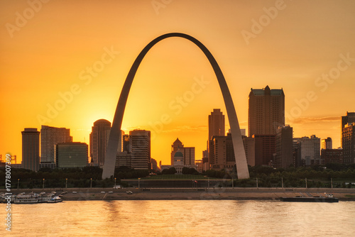 © romanslavik.com, Fototapeta premium St. Louis Downtown Cityscape from the river at sunset, Missouri