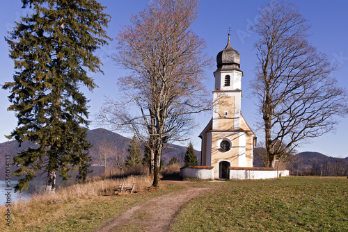 Naklejka premium St. Margreth auf der Halbinsel Zwergern am Walchensee , Oberbayern