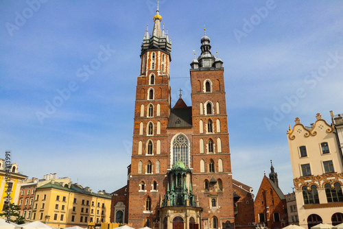 Obraz premium St. Mary's Basilica on Main Market Square in Krakow, Poland. UNESCO World...