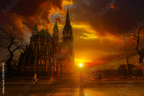 © Ruslan, Fototapeta premium St. Olha and Elizabeth Church in Lviv at Sunset