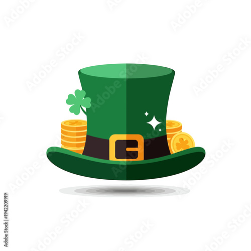 © Umi, Fototapeta premium St Patrick Leprechaun Hat With Gold Coins Emerald Green. Vector Icon. EPS Editable