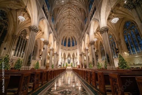© Diego, Fototapeta premium St. Patrick's cathedral interior showing christmas decorations and marble floor