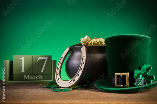 © vetre, Obraz premium St. Patrick's day celebration with leprechaun hat and pot of gold