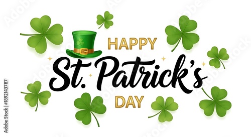 Fototapeta premium St patrick's day celebration with shamrocks and leprechaun hat