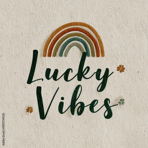 Fototapeta premium St. Patrick's Day Positive Vibes - Rainbow & Text Illustration