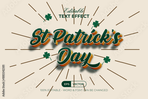 © Mockmenot, Obraz premium St Patrick's Day Text Effect 3D Style. Editable Text Effect.