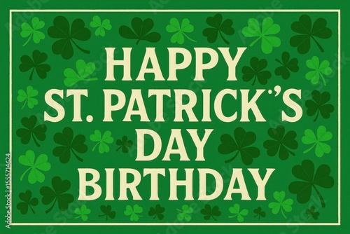 Fototapeta premium St. Patrick's Day themed birthday with green clovers, festive design, birthday celebration
