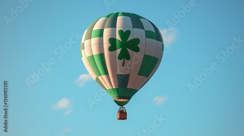 Naklejka premium St. Patrick’s Day Themed Hot Air Balloon Soaring in a Clear Sky, Minimal...