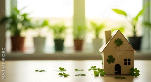 © Md Nurullah , Obraz premium St patricks day home decor with green plants and miniature house