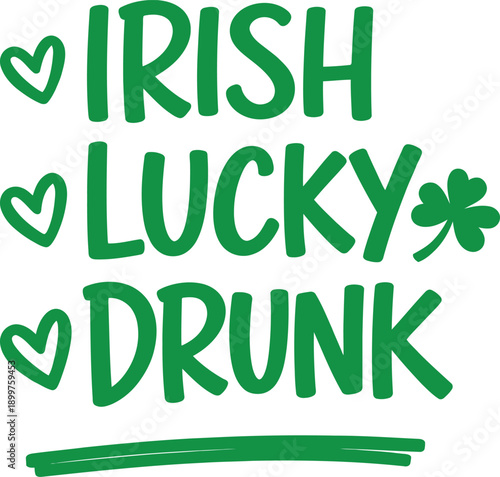 Fototapeta premium St Patricks Day Party Quote Irish Lucky Drunk Green Hand Drawn Lettering
