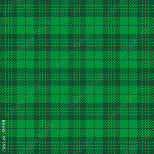 © mityay_pg, Fototapeta premium St. Patricks day tartan plaid. Scottish pattern in green and dark green cage. Scottish cage. Traditional Scottish checkered background. Seamless fabric texture. Vector illustration