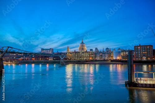 Fototapeta premium St. Paul's Cathedral across Millennium Bridge and the River Thames in London, UK.