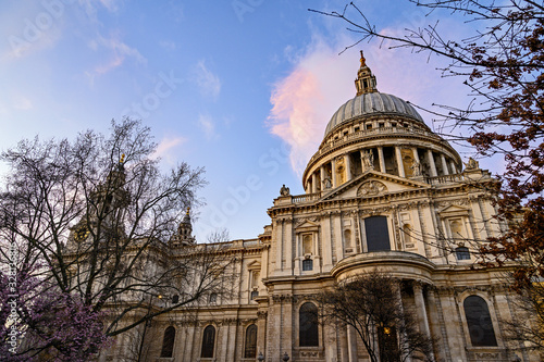 Fototapeta premium St. Paul's Cathedral in London, UK. Evening view of St Paul's taken from the south of the cathedral. View of the dome framed by trees.