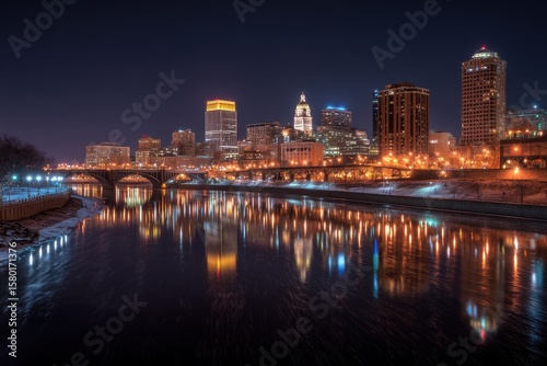 © Oleksandr, Fototapeta premium St. Paul Skyline. Minnesota at Night in Urban City Landscape with River View