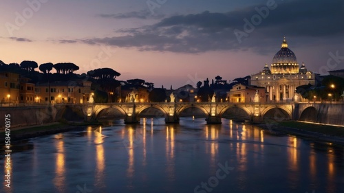 © Abd, Obraz premium St. Peter’s Basilica and Bridge at Sunset – Vatican City, Rome