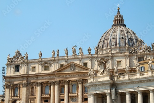 © Andrea, Obraz premium St. Peter's Basilica dome and facade in Vatican City under clear blue sky