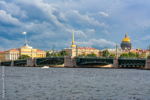 © Mistervlad, Obraz premium St. Petersburg cityscape with Saint Isaac's Cathedral, Admiralty building and Palace bridge, Russia