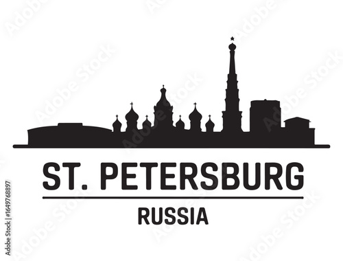 © Nargis, Fototapeta premium St. Petersburg skyline horizontal banner. St. Petersburg, Russia. Vector template for your design. Vector black silhouette. with white background