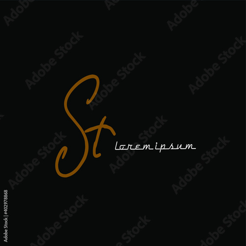 Obraz premium ST S T Initial handwriting creative fashion elegant design logo Sign Symbol...