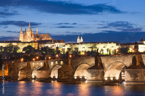 © travelwitness, Obraz premium St Vitus Cathedral, Prague Castle and Charles Bridge