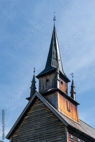 © Cezanne-Fotografie, Fototapeta premium Stabkirche aus dem 12. Jahrhundert in Kaupanger, Norwegen