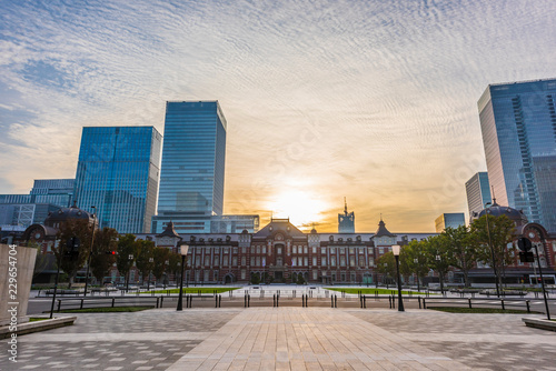 Obraz premium Stacja Tokyo we wczesnych godzinach porannych Niebo o świcie w Marunouchi,...