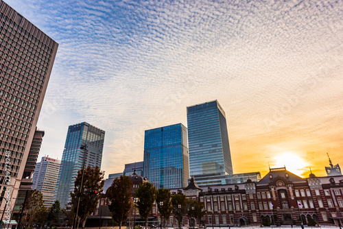 Obraz premium Stacja Tokyo we wczesnych godzinach porannych Niebo o świcie w Marunouchi,...