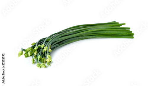 © yodaswaj, Fototapeta premium stack Chives flower or Chinese Chive on white background.