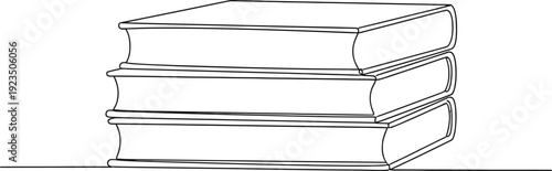 © Sheikh, Obraz premium Stack of books education concept continuous line drawing vector