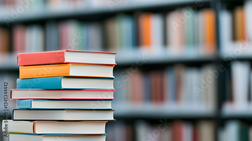 Fototapeta premium Stack Of Books In Library