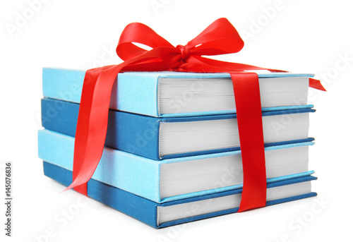 © Africa Studio, Naklejka premium Stack of books with ribbon as gift on white background