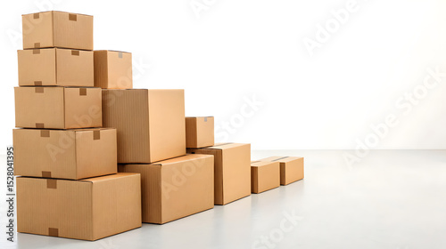 © Fikri Haikal, Fototapeta premium Stack of brown cardboard boxes on white background