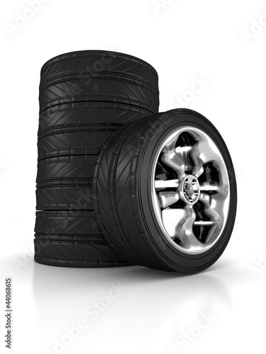 © VERSUSstudio, Obraz premium stack of car wheels on white background