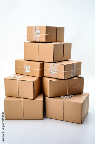 Obraz premium Stack of cardboard ail boxes on a white background. AI generated